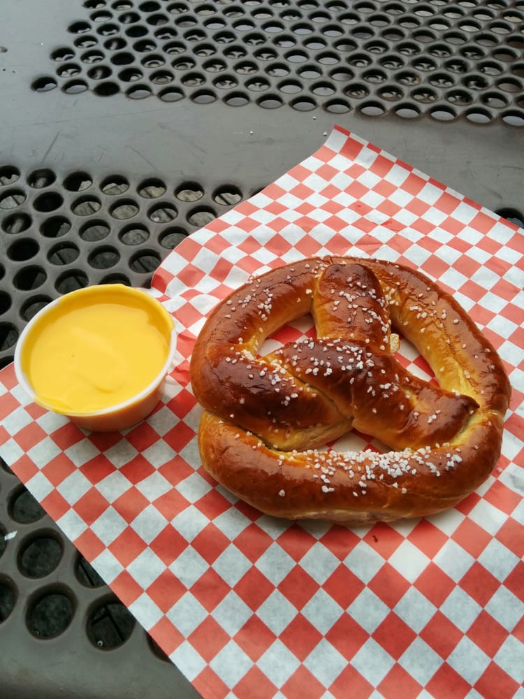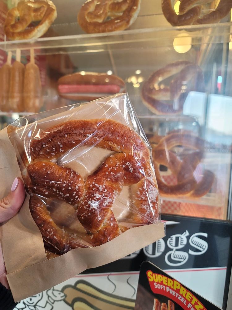 Customer reviews testify to the quality and taste. Tommy Nguyen raves about the pretzels, while Matías Gálvez appreciates the swift service paired with excellent espresso. The friendly atmosphere is perfect for a quick lunch or snack, where you'll find items like pretzel dogs accompanied by a well-stocked condiment bar.